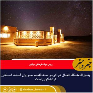 رییس میراث فرهنگی سرایان گفت: پنج اقامتگاه فعال در کویر سه قلعه به عنوان جاذبه بی رقیب شهرستان آماده اسکان گردشگران است. ، حسین یکتا