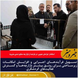 🔹استاندار خراسان جنوبی از بازارچه صنایع دستی و گردشگری شهرستان فردوس بازدید کرد. ، امروز جمعه (۱فروردین) سید محمدرضا هاشمی استاندار خراسان جنوبی، با همراهی