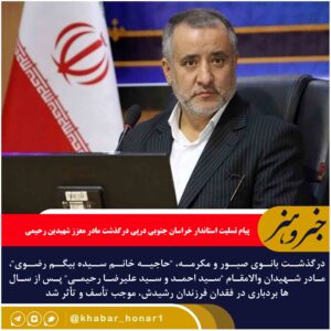 پیام تسلیت استاندار خراسان جنوبی درپی درگذشت مادر معزز شهیدین رحیمی