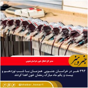 ۳۹۳ نفر در خراسان جنوبی همزمان با شب نوزدهم و بیست و یکم ماه مبارک رمضان خون اهدا کردند