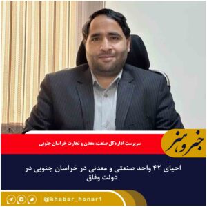 سرپرست ادارهکل صنعت، معدن و تجارت خراسان جنوبی گفت: از ابتدای دولت چهاردهم تاکنون ۴۲ واحد صنعتی و معدنی در استان احیا و فعالسازی شده