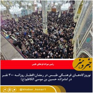 رئیس میراث فرهنگی طبس با اشاره به اینکه نوروزگاههای فرهنگی طبس با رعایت حرمت ماه رمضان برگزار می شود، گفت: هر شب ۳۰۰ نفر در