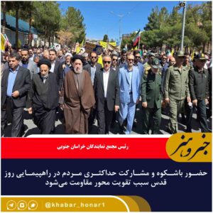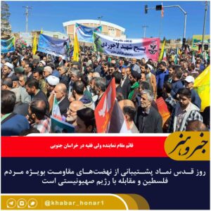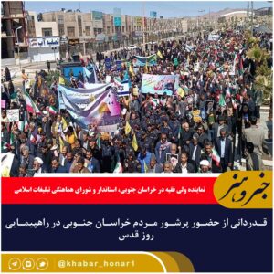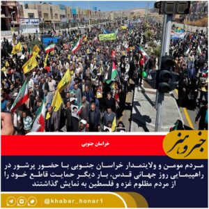 – مردم مومن و ولایتمدار خراسان جنوبی با حضور پرشور در راهپیمایی روز جهانی قدس، بار دیگر حمایت قاطع خود را از مردم مظلوم غزه