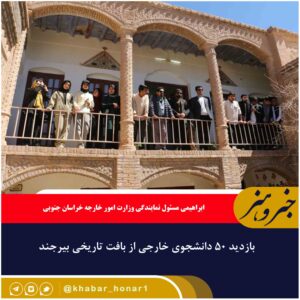 ۵۰ پنجاه دانشجوی خارجی دانشگاههای بیرجند و علوم پزشکی بیرجند در مدت ۳ ساعت از بناها و موزه موجود در بافت تاریخی بیرجند بازدید کردند.