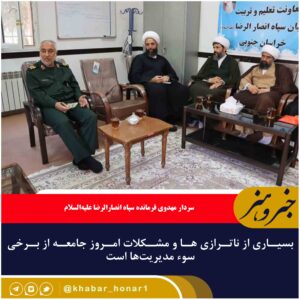 سردار مهدوی فرمانده سپاه انصارالرضا علیهالسلام امروز در دیدار ائمه جمعه استان خراسان جنوبی گفت: در سال گذشته فراز و نشیبهای بسیاری را پشت سر