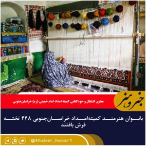 معاون اشتغال و خودکفایی کمیته امداد امام خمینی (ره) خراسانجنوبی از بافت ۴۴۸ تخته فرش توسط بانوان تحت حمایت این نهاد در سال گذشته خبر
