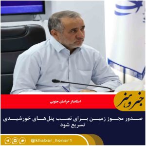 🔹استاندار خراسان جنوبی گفت: صدور مجوز زمین برای نصب پنل های خورشیدی، تسریع شود. سیدمحمدرضا هاشمی در ستاد توسعه انرژی های تجدیدپذیر با اشاره