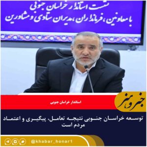 🔹استاندار خراسان جنوبی با تأکید بر نقش تعامل، پیگیری و اعتماد مردم در پیشرفت استان گفت: توسعه همهجانبه در گرو وحدت، کار جهادی و اعتماد