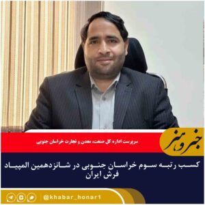 سرپرست اداره کل صنعت، معدن و تجارت استان از کسب رتبه سوم خراسان جنوبی در شانزدهمین المپیاد فرش ایران خبرداد. مهدی پارسا از کسب رتبه
