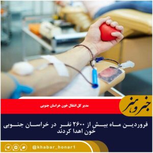 فروردین ماه بیش از ۲۶۰۰ نفر در خراسان جنوبی خون اهدا کردند