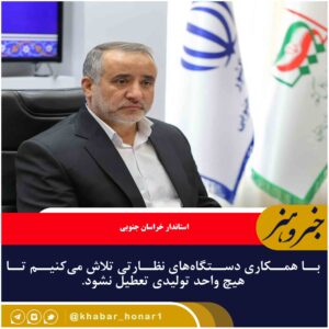 استاندار خراسان جنوبی گفت: با همکاری دستگاههای نظارتی تلاش میکنیم تا هیچ واحد تولیدی تعطیل نشود. سید محمد رضا هاشمی در حاشیه برگزاری ستاد احیای