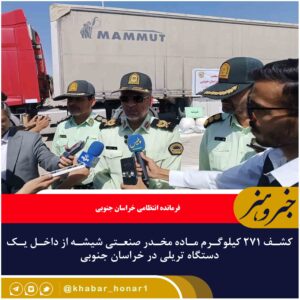 کشف ۲۷۱ کیلوگرم ماده مخدر صنعتی شیشه از داخل یک دستگاه تریلی در خراسان جنوبی