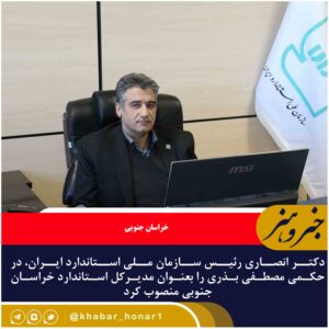 دکتر انصاری رئیس سازمان ملی استاندارد ایران، در حکمی مصطفی بذری را بعنوان مدیرکل استاندارد خراسان جنوبی منصوب کرد. دکتر فرزانه انصاری در این حکم