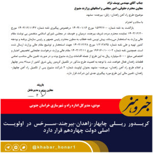 - محور بیرجند–قائن بهزودی بهطور کامل دوبانده میشود