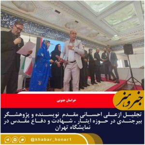 در آیین تجلیل از نویسندگان حوزه ایثار و شهادت و دفاع مقدس در نمایشگاه تهران؛ از علی احسانی مقدم؛ نویسنده و پژوهشگر بیرجندی تجلیل شد.