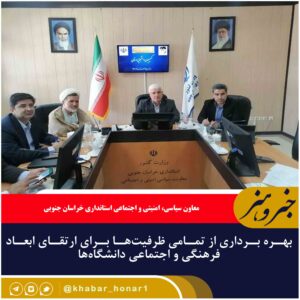 معاون سیاسی، امنیتی و اجتماعی استانداری خراسان جنوبی گفت: بهره برداری از تمامی ظرفیتها برای ارتقای ابعاد فرهنگی و اجتماعی دانشگاهها مورد تأکید است. حسین