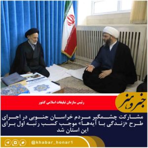 -رئیس سازمان تبلیغات اسلامی کشور گفت: مشارکت چشمگیر مردم خراسان جنوبی در اجرای طرح «زندگی با آیهها» موجب کسب رتبه اول برای این استان شد.