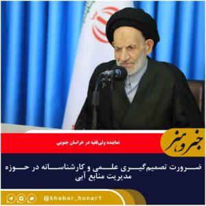 نماینده ولیفقیه در خراسان جنوبی و امام جمعه بیرجند بر ضرورت تصمیمگیری علمی و کارشناسانه در حوزه مدیریت منابع آبی تأکید کرد و گفت: مدیریت