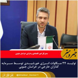 مدیرکل امور اقتصادی و دارایی خراسان جنوبی از تولید ۳۴ مگاوات انرژی خورشیدی در استان توسط سرمایه گذاران خارجی خبر داد و گفت: تا کنون