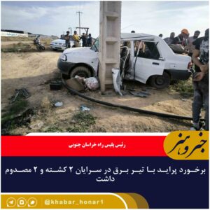 رئیس پلیس راه خراسان جنوبی گفت: بر اثر برخورد یک دستگاه خودرو پراید با تیر برق در سرایان ۲ نفر کشته و ۲ نفر مصدوم