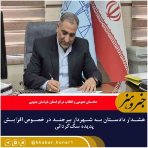 دادستان عمومی و انقلاب مرکز استان خراسان جنوبی در نامهای خطاب به شهردار بیرجند، نسبت به گسترش پدیده سگگردانی در پارکها، فضاهای سبز و محلهای