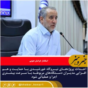 🔹استاندار خراسان جنوبی گفت: تسریع در روند اجرای نیروگاه های خورشیدی مورد تأکید است. ؛ سید محمدرضا هاشمی در پنجمین جلسه ستاد توسعه انرژی های