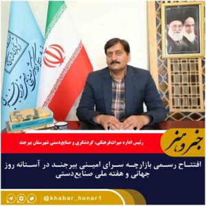 رئیس اداره میراثفرهنگی، گردشگری و صنایعدستی شهرستان بیرجند از افتتاح رسمی بازارچه صنایعدستی سرای امینی بیرجند در آستانه روز جهانی و هفته ملی صنایعدستی خبر