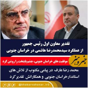 قدیر معاون اول رئیس جمهور از عملکرد سیدمحمدرضا هاشمی در خراسان جنوبی