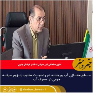 🔹معاون هماهنگی امور عمرانی استاندار خراسان جنوبی با تاکید بر لزوم صرفه جویی در مصرف آب، گفت: سطح مخازن آب بیرجند در وضعیت مطلوب است.