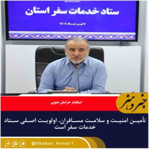 🔹استاندار خراسان جنوبی گفت: تأمین امنیت و سلامت مسافران، اولویت اصلی ستاد خدمات سفر است. سیدمحمدرضا هاشمی در ستاد خدمات سفر استان با تأکید بر