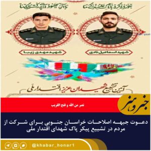 دعوت جبهه اصلاحات خراسان جنوبی برای شرکت از مردم در تشییع پیکر پاک شهدای اقتدار ملی