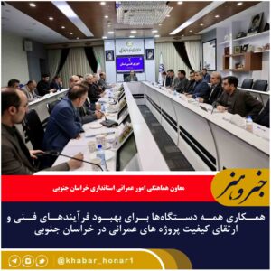 معاون هماهنگی امور عمرانی استانداری خراسان جنوبی گفت: همکاری همه دستگاهها برای بهبود فرآیندهای فنی و ارتقای کیفیت پروژههای عمرانی مورد تأکید است. محمد فرهادی