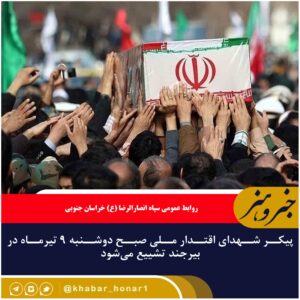 مراسم تشییع پیکر مطهر شهدای اقتدار ملی در جنگ تحمیلی علیه رژیم صهیونیستی و آمریکای جنایتکار، صبح دوشنبه ۹ تیرماه در بیرجند برگزار میشود. در
