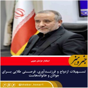 استاندار خراسان جنوبی تأکید کرد: تسهیلات ازدواج و فرزندآوری، فرصتی طلایی برای جوانان و خانوادهها میباشد. سید محمدرضا هاشمی در جلسه ستاد حمایت از خانواده