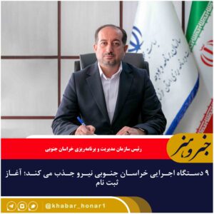 رئیس سازمان مدیریت و برنامهریزی خراسان جنوبی ۹ دستگاه اجرایی خراسان جنوبی با ۶۹ سهمیه نیرو جذب می کنند. علی بهدانی ظهر اظهار داشت: ثبتنام