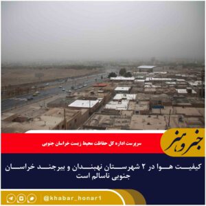 کیفیت هوا در ۲ شهرستان نهبندان و بیرجند خراسان جنوبی ناسالم است