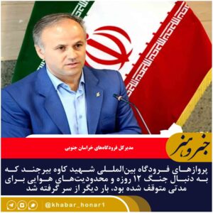 مدیرکل فرودگاههای خراسان جنوبی گفت: پروازهای فرودگاه بینالمللی شهید کاوه بیرجند که به دنبال جنگ ۱۲ روزه و محدودیتهای هوایی برای مدتی متوقف شده بود،