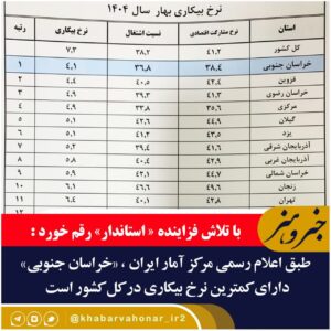 خراسان جنوبی در صدرِ ایجاد و تثبیت اشتغال در کشور