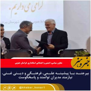 معاون سیاسی، امنیتی و اجتماعی استانداری خراسان جنوبی گفت: بیرجند با پیشینه علمی، فرهنگی و دینی غنی، نیازمند مدیران توانمند، مردمی و پاسخگوست. ؛ حسین