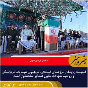 استاندار خراسان جنوبی با تأکید بر نقش تعیین کننده عشایر در تأمین امنیت مرزها گفت: امنیت پایدار استان، مرهون غیرت، مردانگی و روحیه شهادتطلبی عشایر