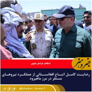 استاندار خراسان جنوبی از رضایت کامل اتباع افغانستانی از عملکرد نیروهای مستقر در مرز ماهیرود خبر داد. ؛ سید محمدرضا هاشمی در جریان بازدید از