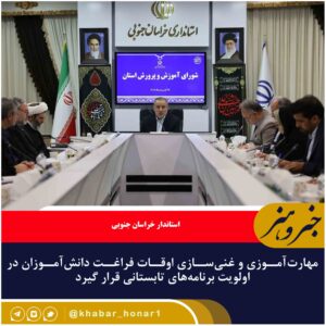 🔹استاندار خراسان جنوبی با تأکید بر لزوم توجه ویژه به مهارتآموزی و تربیت نسل آینده، خواستار برنامهریزی جامع برای غنیسازی اوقات فراغت دانشآموزان در تابستان