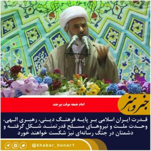 خطیب جمعه بیرجند گفت: قدرت ایران اسلامی بر پایه فرهنگ دینی، رهبری الهی، وحدت ملت و نیروهای مسلح قدرتمند شکل گرفته و دشمنان در جنگ