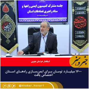 🔹استاندار خراسان جنوبی از اختصاص ۱۶۰۰ میلیارد تومان اعتبار ویژه برای توسعه و ایمنسازی راههای استان خبر داد. سید محمدرضا هاشمی در جلسه مشترک کمیسیون