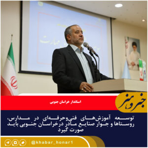 🔹استاندار خراسان جنوبی با تأکید بر نقش مهارتآموزی در ایجاد اشتغال پایدار و کاهش آسیبهای اجتماعی، خواستار توسعه آموزشهای فنیوحرفهای در مدارس، روستاها و جوار