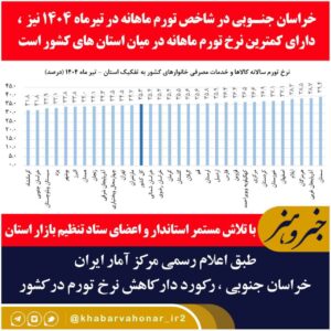 - خراسان جنوبی برای ششمین ماه پیاپی پایین ترین نرخ تورم در کشور را کسب کرد