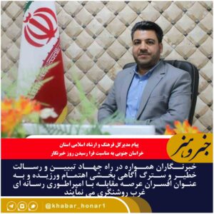 «ن وَالْقَلَمِ وَمَا یَسْطُرُونَ؛ سوگند به قلم و آنچه مینویسند» پیام مدیرکل فرهنگ و ارشاد اسلامی استان خراسان جنوبی به مناسبت فرا رسیدن روز خبرنگار