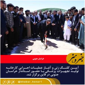 آیین کلنگ زنی و آغاز عملیات اجرایی کارخانه تولید تجهیزات پزشکی با حضور استاندار خراسان جنوبی در قاین برگزار شد. مراسم کلنگ زنی و آغاز