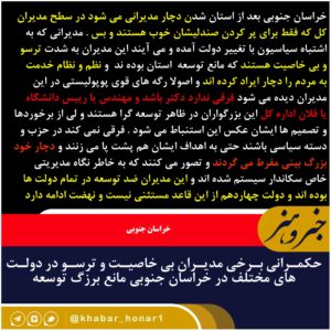 حکمرانی برخی مدیران بی خاصیت و ترسو در دولت های مختلف در خراسان جنوبی مانع برزگ توسعه