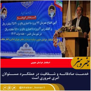 استاندار خراسان جنوبی با بیان اینکه امروز همه نهادها و مسئولان موظف به تحقق جهاد تبیین هستند، گفت: خدمت صادقانه و شفافیت در عملکرد مسئولان